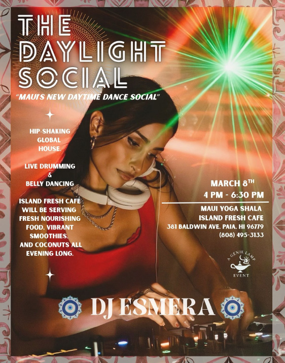 The Daylight Social brings a vibrant fusion of global movement, music, and community to the Maui Yoga Shala. This daytime gathering invites dancers of all levels into an uplifting space shaped by hip‑shaking global house, live drumming, and belly dancing, creating a rhythmic tapestry that celebrates culture, connection, and embodied joy.